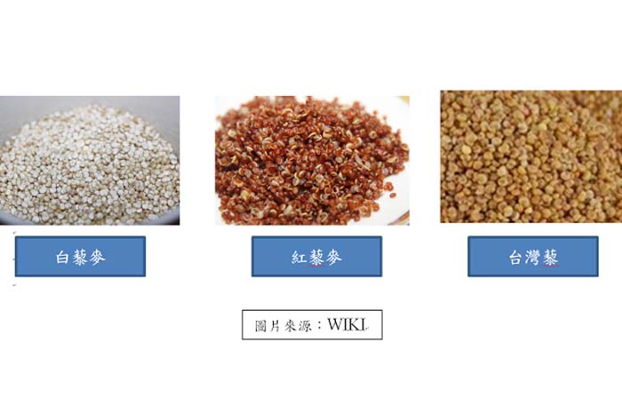 ▲3種藜麥在外觀、顏色、大小的差異比較。整理/陳柏鈞營養師